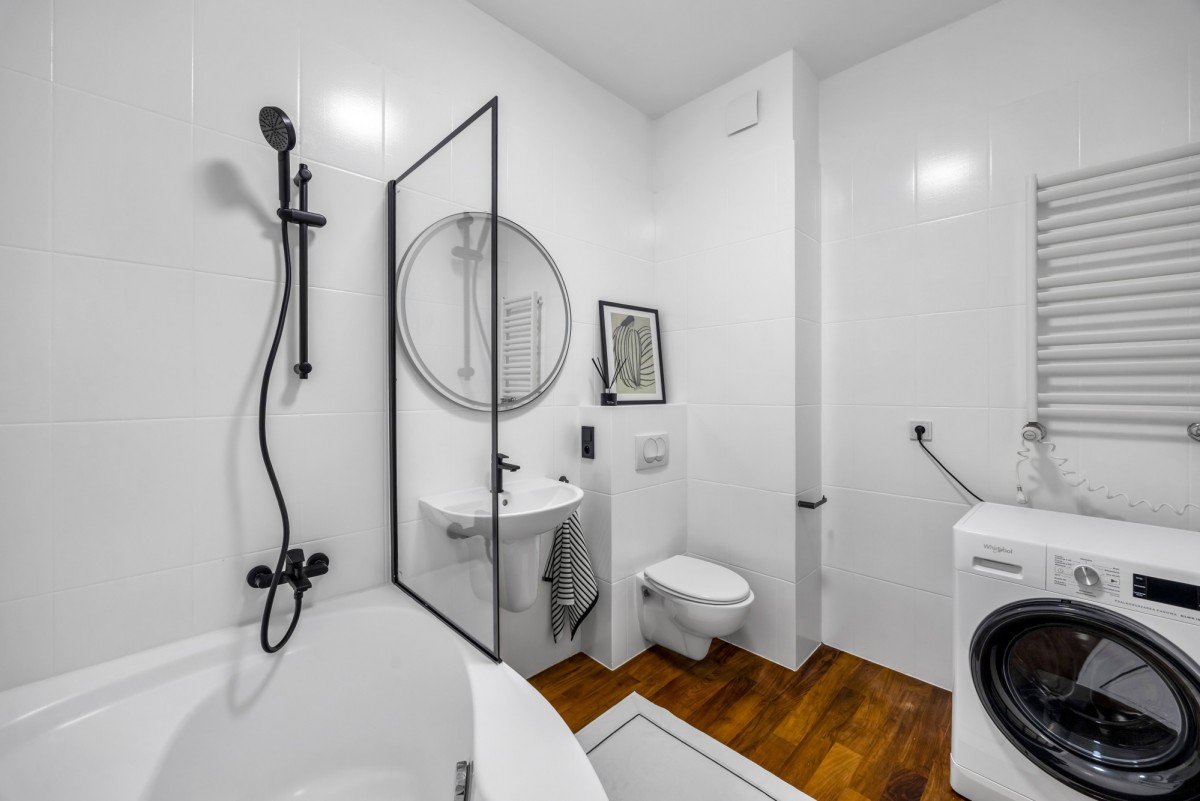 - Toaleta gościnna, usytuowana przy wejściu do mieszkania