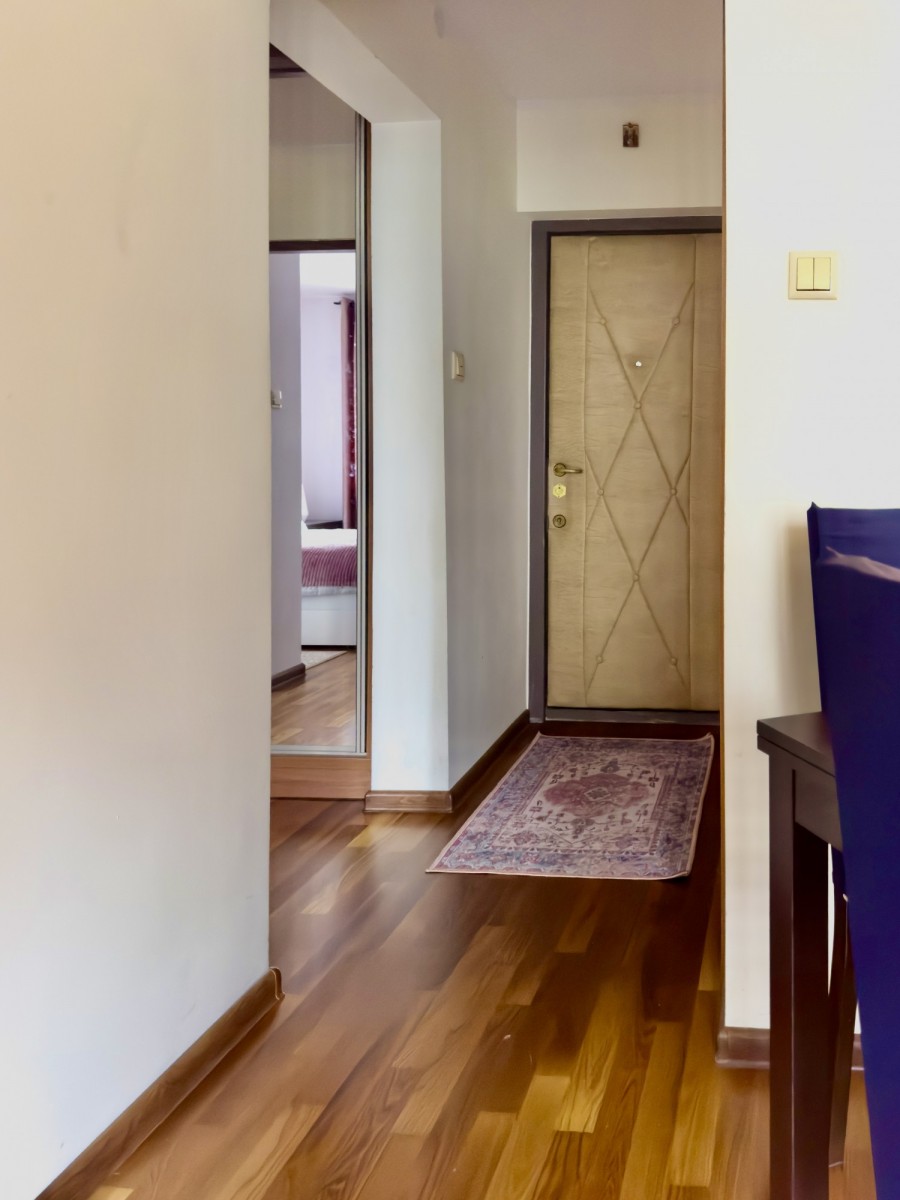 W przedpokoju jest duża szafa wnękowa, szafka na buty oraz miejsce na ubrania wierzchnie