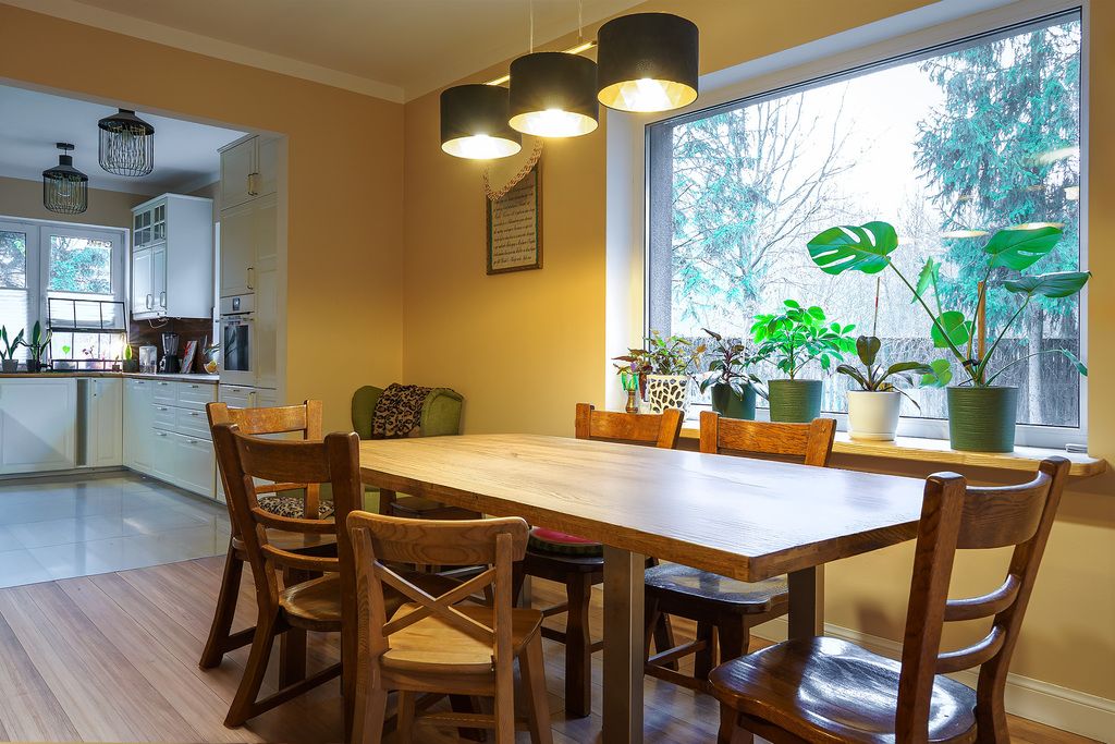 Salon i kuchnia są wyjątkowo dobrze doświetlone, dzięki dużym oknom wychodzącym na zachód.