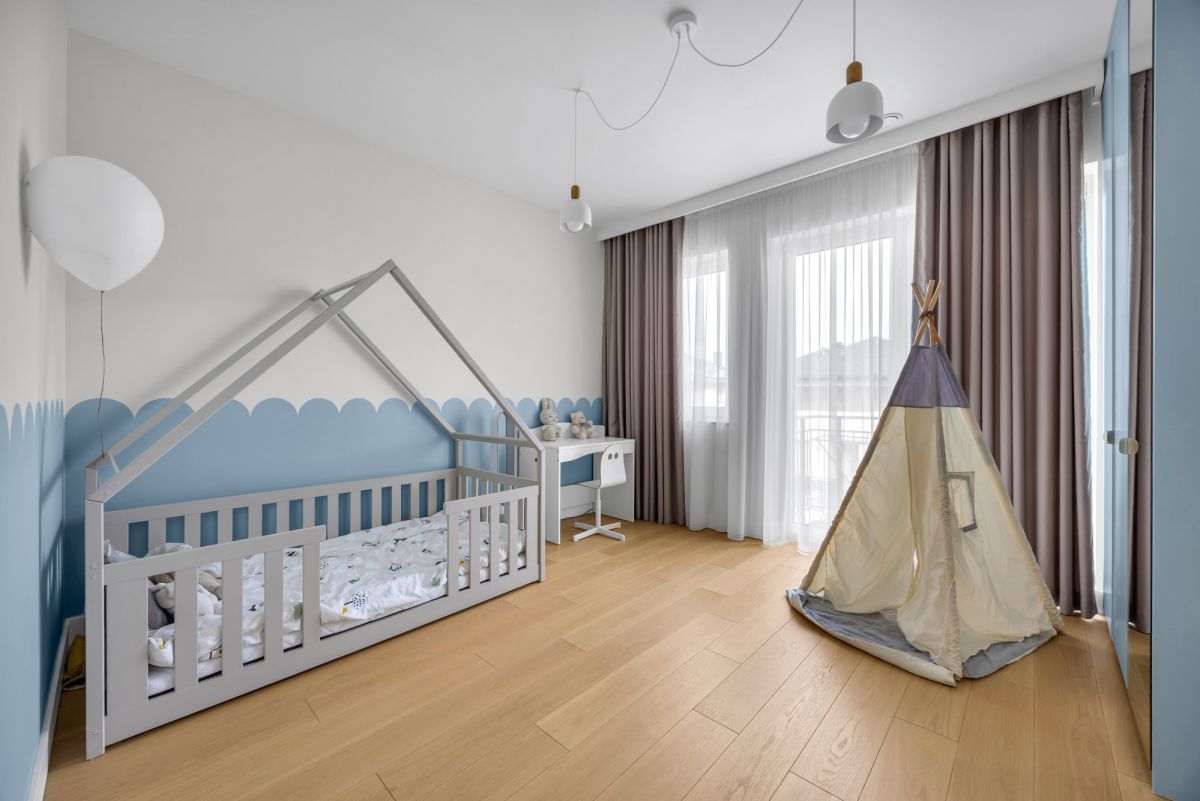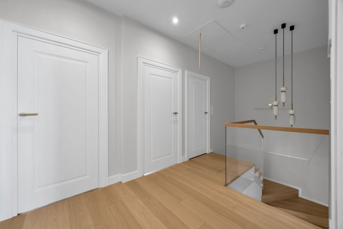 Piętro stanowi komfortową część prywatną. Główna sypialnia została zaprojektowana w standardzie master z własną garderobą oraz łazienką wyposażoną w wannę, prysznic i podwójną umywalkę. Oprócz tego znajdują się tu dwa dodatkowe pokoje (idealne jako sypialnie, gabinet lub pokój gościnny), druga łazienka oraz osobna garderoba. Na piętrze znajdują się dwa balkony, dostępne bezpośrednio z pokoi. Uzupełnieniem przestrzeni jest strych, który doskonale sprawdza się jako miejsce do przechowywania.