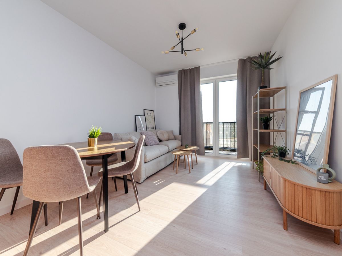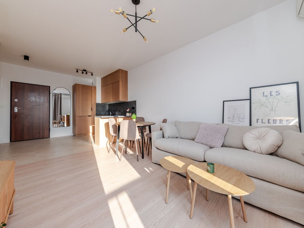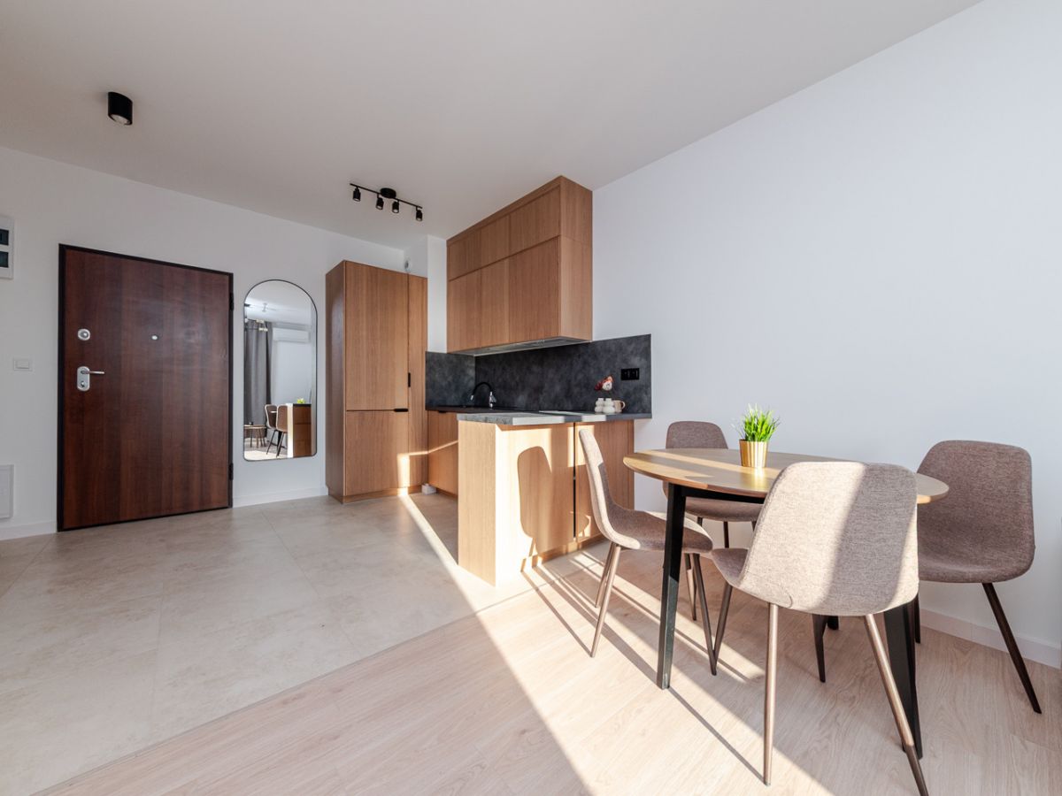 Mieszkanie jest w pełni wykończone, umeblowane i wyposażone w nowe sprzęty, dzięki czemu nowy właściciel może wprowadzić się od razu po zakupie. Lokal nigdy wcześniej nie był zamieszkały.