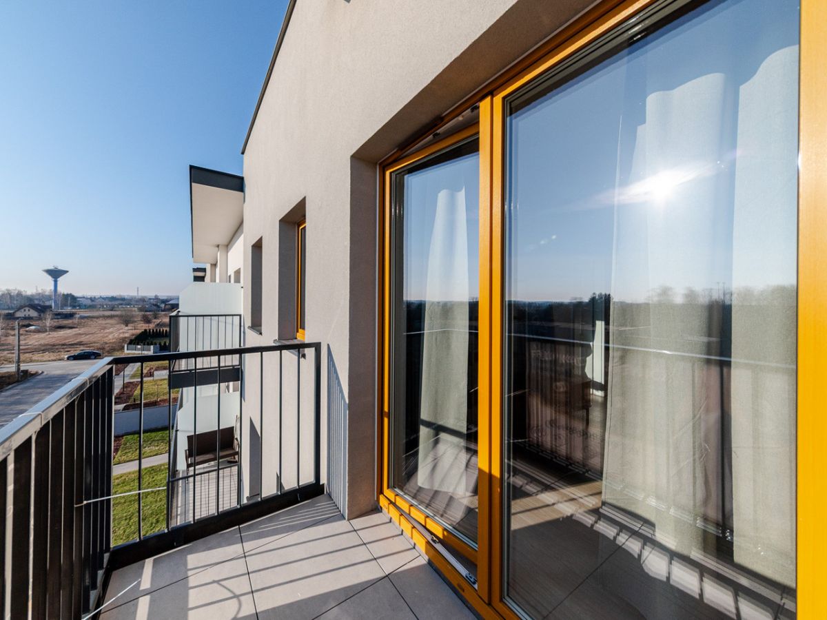 Nieruchomość znajduje się na ostatnim - trzecim piętrze nowego budynku z 2025 roku z windą, zrealizowanego przez dewelopera Bud-Rim Development. Z mieszkania rozpościera się ładny, otwarty widok.