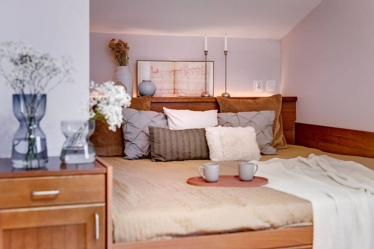 - przestronna sypialnia główna z dużym, komfortowym łóżkiem typu king size (200×220 cm),