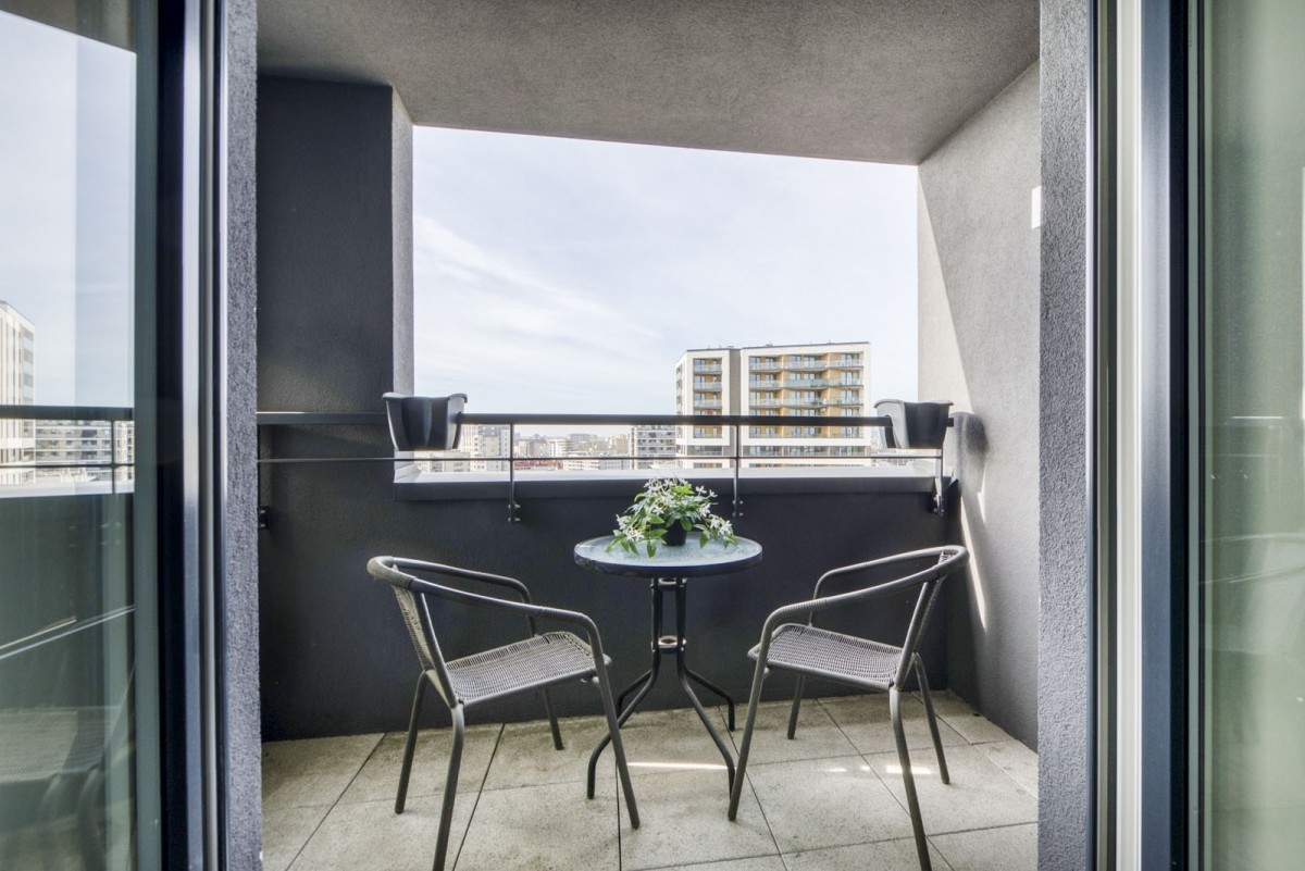 Proponowane mieszkanie znajduje się na cichym i zielonym osiedlu. Inwestycja składa się z 15-piętrowego budynku z wewnętrznym patio. Mieszkanie znajduje się na DWUNASTYM PIĘTRZE z windą. Składa się z salonu, sypialni, aneksu kuchennego oraz łazienki i przedpokoju. Z salonu wyjście na balkon z widokiem na centrum Warszawy. Kuchnia jest w pełni wyposażona we wszystkie potrzebne sprzęty AGD: zmywarkę, lodówkę z zamrażarką, piekarnik, płytę indukcyjną i okap. Funkcjonalna łazienka posiada oprócz standardowego wyposażenia dodatkowo pralkę. NAJEMCA MA MOŻLIWOŚĆ SKORZYSTANIA Z OFEROWANEGO PRZEZ WYNAJMUJĄCEGO PEŁNEGO WYPOSAŻENIA.