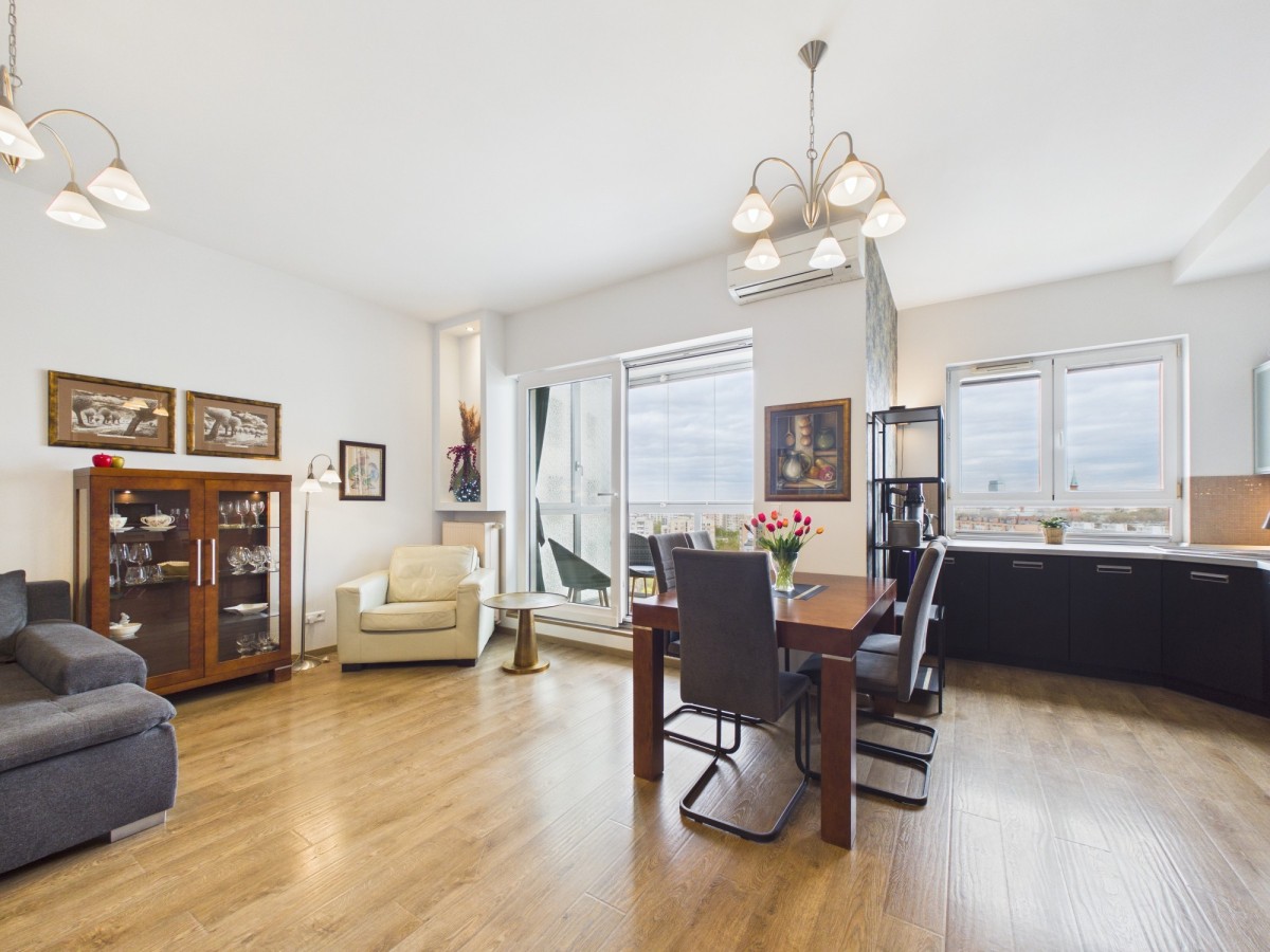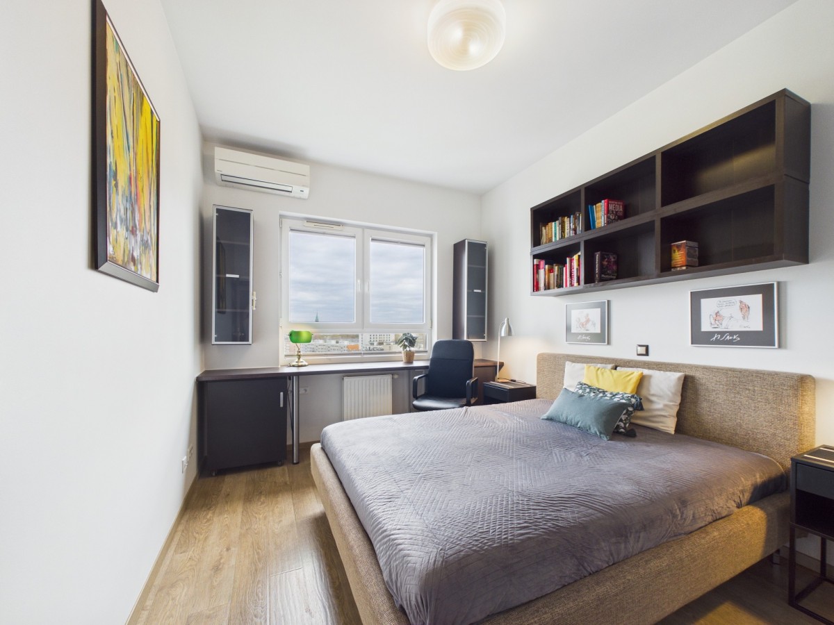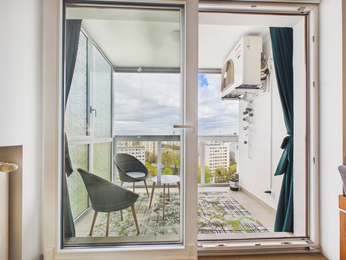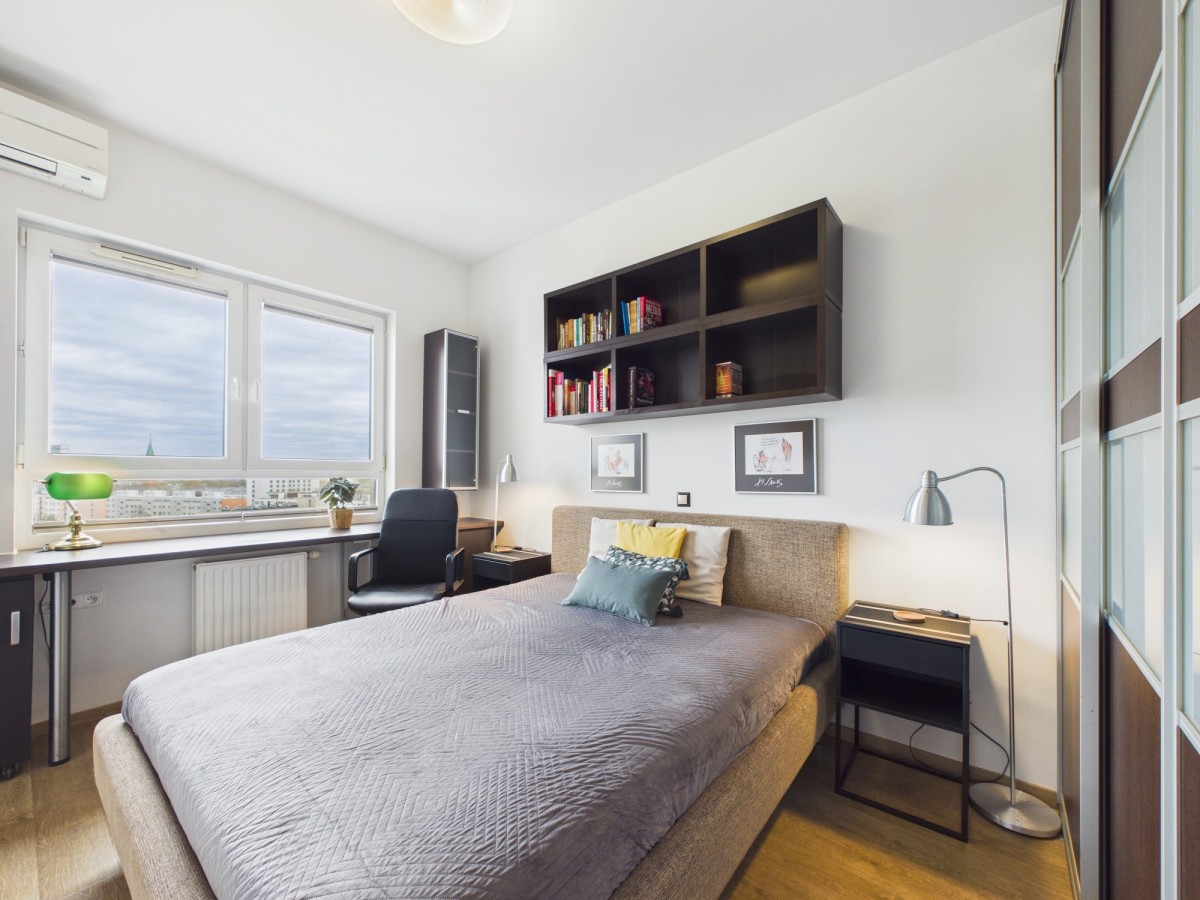 Wchodzisz do w pełni umeblowanego, klimatyzowanego wnętrza, które jest gotowe na Twój styl życia od pierwszego dnia. Salon z aneksem kuchennym tworzy elegancką, otwartą przestrzeń do życia, wypoczynku i pracy, a oddzielna sypialnia również z miejscem do pracy zapewnia prywatność i regenerację. Loggia z miejscem do siedzenia jest prywatną strefą relaksu z fantastycznym widokiem na miasto.