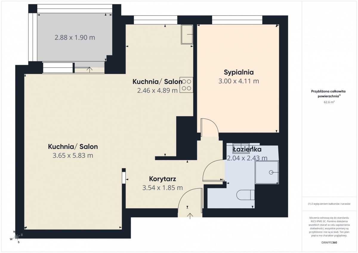 • Funkcjonalny układ: salon z aneksem kuchennym + sypialnia